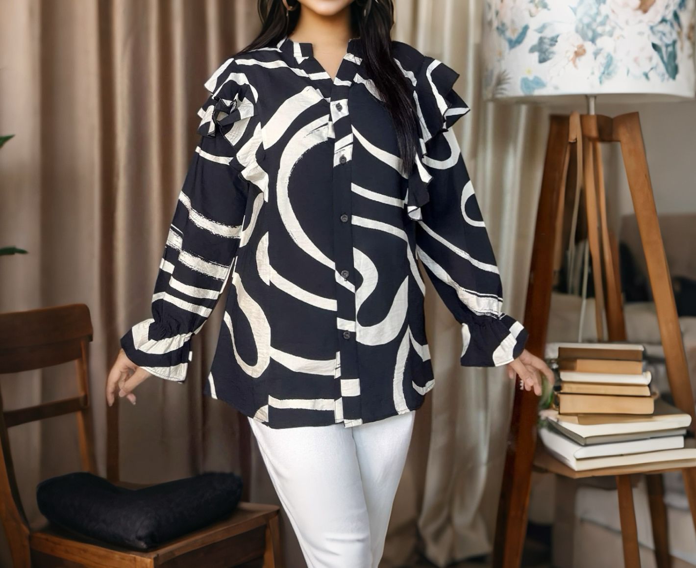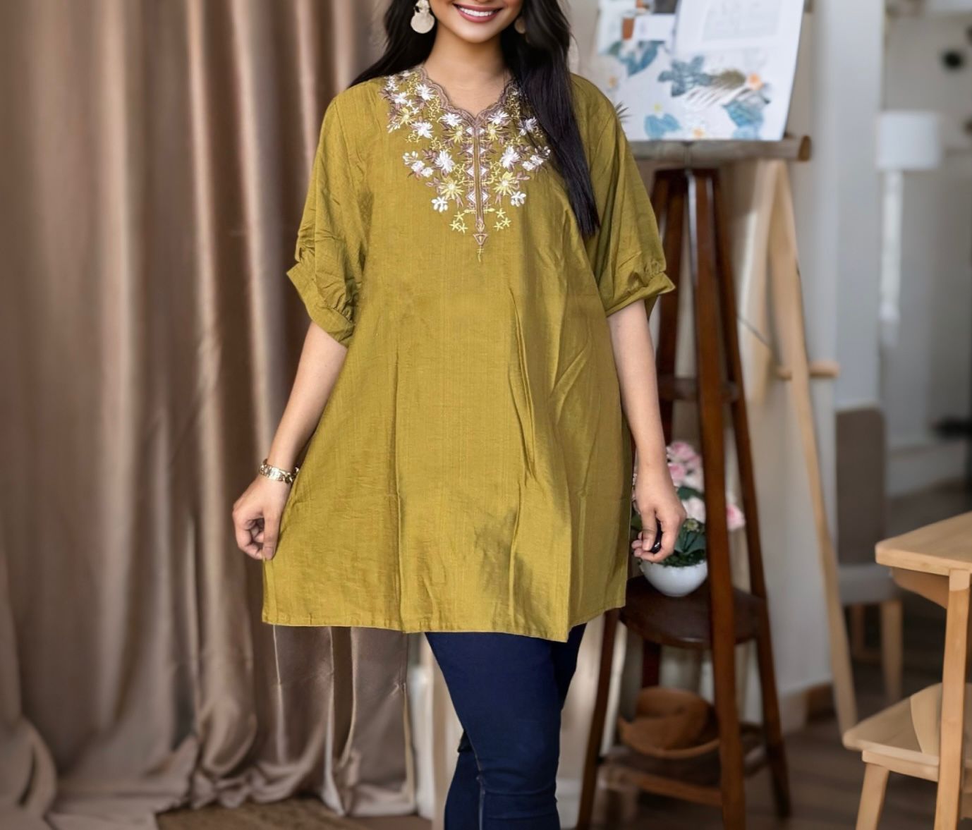 • Neckline: Stylish V-cut with button detailing
